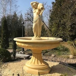 Fontanna Gemelli to prawdziwa perełka wśród ogrodowych dekoracji wodnych, wyróżniająca się majestatyczną formą i eleganckim wykończeniem. Jej potrójna konstrukcja nadaje jej imponującej wysokości, a misternie rzeźbiona figura bliźniąt pod parasolem stanowi doskonały punkt centralny kompozycji. Tego rodzaju ozdoba przyciąga spojrzenia i buduje atmosferę spokoju oraz prestiżu. Co istotne, fontanna została wykonana z trwałego konglomeratu betonowego, co gwarantuje jej długowieczność i odporność na warunki zewnętrzne.